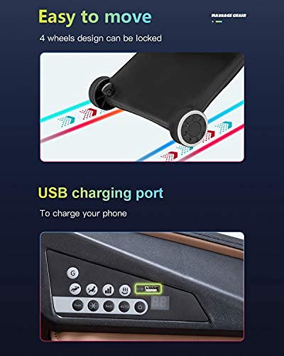 ??Zero Gravity Massage Chair?The zero-gravity mode is a general function of the massage chair. But our zero-gravity mode is closer to the bottom, which can fully relax your entire body in a completely relaxed body.On the left side of the control panel with a USB charging port, you can use your massage chair to charge your phone and other electronic products. ??Humanized packaging design?Our massage chair adopts split three-box packaging, which reduces the volume of the product and the weight of the individual packaging, which reduces the possibility of problems during transportation, so that our products can be more convenient and safe. Sent into your home.full body massage chair zero gravity massage chair. ??Easy To Move?The unique baby compartment shape is matched with the two rollers on the bottom, which makes the massage chair look very special and easy to move. If you need to fix the massage chair, just screw the knob on the right side of the left lower wheel to the right. You can keep the massage chair still. ??Functional Diversity?Three power level back massages, controlled heating, adjustable airbag function, eight fixed point module massages, and 3 different automatic massage methods are all designed to give you a more appropriate massage experience.Including special stretching programs for full body stretching, dual foot rollers on the feet area are suitable for most,but you can also choose power speed and airbag pressure to control your own massage.shiatsu massage chair full body massage chair ??What You Will Got ?We guarantee that you will like this massage chair. If you are not satisfied with this massage chair, please contact us and we will be happy to give you a 100% refund! If you have any questions for massage chari, please feel free to ask! shiatsu massage chair full body massage chair