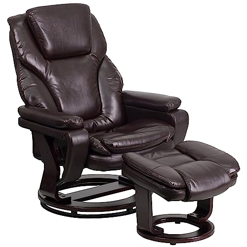 With so many on offer recently, it is great to have a make you can recognise. The Flash Furniture Contemporary Leather Recliner and Ottoman with Swiveling Mahogany Wood Base is certainly that and will be a great acquisition.
