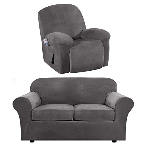 We are happy to present the famous H.VERSAILTEX 3 Pieces Stretch Sofa Covers for 2 Cushion Couch Covers (Grey) Bundle 1-Piece Velvet Recliner Chair Covers (Grey).